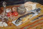 Натюрморт с копчёной рыбой на туалетной бумаге