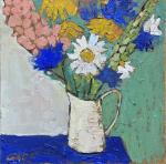 Голубь Анна. Букет в белой вазе и голубая лошадка