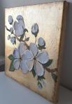 Картина выполнена текстурной пастой с акрилом на фоне из "золотой" потали, с состаренными краями
