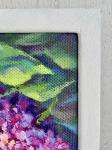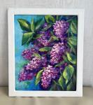 Картина с сиренью оформлена в белую раму и продается вместе с ней. Подвес установлен.