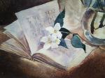 Ключевые слова: натюрморт, цветы, жасмин, весенний натюрморт, весна, книги, цветы в вазе, акварель, подарок