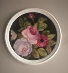 Букет из цветов розы и красной герберы, на который села бабочка, написан с натуры, обрамлен в крашеный сосновый багет 4 см;, работа с подвесом.
