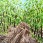 Этот пейзаж напоминает состояние между сном и пробуждением, когда цвета становятся эмоциями. Лиловые оттенки цветов на фоне розового неба создают пространство уязвимой красоты - место, где можно задержаться взглядом и позволить себе быть в моменте.