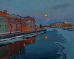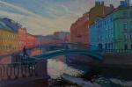 На этой картине изображен весенний вечер в Санкт-Петербурге. Канал Грибоедова у Сенного мостика. Картина написана в конце марта - начале апреля 2024 года.