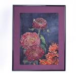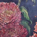 Акварельная картина с красивыми пушистыми цветами бордовых хризантем. Работа станет акцентом в интерьере, а также прекрасным подарком для любого повода.
