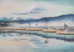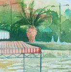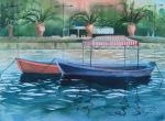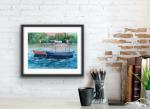 Небольшая акварельная картина подойдет как для офиса, так и для спали. Сюжет настраивает на мысли об отдыхе, море и солнце: здесь и пальмы и лодки и волны.
