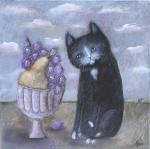 На переднем плане – скромный букет полевых цветов в стеклянной вазе. Главный хранитель этого спокойствия – рыжий кот, погруженный в глубокий сон и растянувшийся во всю длину. Фон – узнаваемая панорама далекого домика, леса и, главное, огромного неба, заполненного объемными облаками.