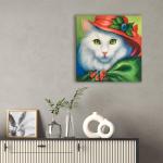 Парадный портрет белай кошечки в виде дамы в шляпке. Выразительные глаза притягивают взгляд смотрящего. Живописная многоцветная картина. Украсит будуар, детскую , гостиную и тд. Картина без рамы. Рама побирается под ваш интерьер. Размер 40х40 см. В моём профиле есть другие картины с кошками.