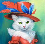 Парадный портрет КОТА в шляпе , у картины есть пара- кошечка в красивом наряде . Эти картины из серии "Добрые и милые". Картина написана в классической манере многослойной масляной живописи на холсте и подрамнике. Размер 80*80 см. Готова к навеске. Украсит гостиную, детскую, спальню и тд.