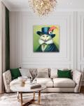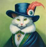 Ключевые слова: живопись маслом картина маслом картина для детской картина в спальню синий зеленый кот в шляпе портрет кота кошка кот