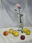 Натюрморт с яблоками и розой в простой вазе
