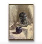 Изысканный, камерный натюрморт, отражающий мимолетную красоту простого момента. Приглушённый свет создаёт атмосферу уюта и покоя. Бархатистая, матовая поверхность спелых плодов контрастирует с нежными, светящимися оттенками драпировки. Хрустальный стакан создаёт прозрачные блики на гранях, которые отбрасывают сложную, мягкую тень, добавляя композиции глубины. Эта работа — живописное исследование взаимодействия света с матовой поверхностью фруктов и тонким стеклом. Картина излучает классическую сдержанность и идеально подойдёт для интерьера, где ценят элегантную тишину.