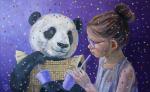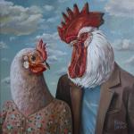 На картинке изображена пара - Курица и Петушок. С использованием гротеска создается образ семейной пары. Для картины выбраны персонажи домашних птиц, наделенные человеческими чертами, для того чтобы подчеркнуть деревенскую безмятежность. Голубое небо символ спокойной, доброй атмосферы в этой супружеской паре.