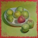 Картина размером 50х50 см написана на холсте масляными красками. Края картины окрашены в цвет картины. Холст покрыт лаком.