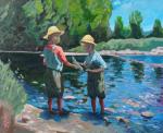 Картина "Рыбачки" — это настоящая радость для глаз и души! Девченки увлечены рыбалкой, и их счастье просто не может не заразить.