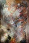 Эта картина создавалась по следам «Осеннего сна», люблю осенний Питер, он дает мне такие ассоциации для живописи. Теплые тона красного и зеленого чередуются с переливами серых, холодных фиолетовых цветов. Я люблю когда идут много слоев, когда один слой тянет за собой другой и останавливаться очень трудно.