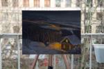Рождественская история. Зимний вечерний пейзаж с домиком в лесу.