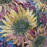 Авторская работа 70х70см на холсте, выполнена текстурной пастой и акриловыми красками. Цветы, кувшин и стол объемные с множеством фактурных бороздок. Цветы в технике скульптурная живопись.