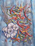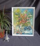 Цветы клубники в стакане.30х40 холст на оргалите, масляными красками. Фактурная картина.Беля рама.