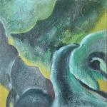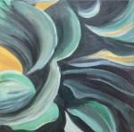 В абстрактной форме изображены лепестки и листья цветка. Картина результат трансформации реальных форм растения. Здесь каждый увидит свои формы и линии.