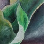 Картина. Коломашкина Анастасия. Зеленые лепестки и листья на темном