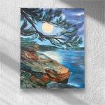 Ключевые слова: интерьерная картина ручная работа ночной пейзаж вода скалы луна современный реализм акриловая живопись природа морской пейзаж сосна море лунная ночь