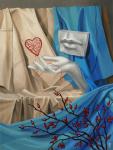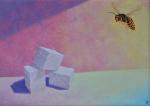 на холсте размером (50х70) изображён сахар в кубиках и направляющаяся в полёте к нему оса