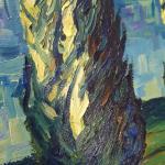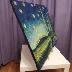 Картина написана в стиле импрессионизма крупными, пастозными мазками, как бы повторяя технику великого Винсента и его картины Звездной ночи.