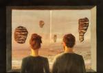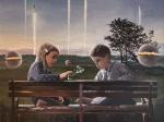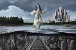 Женщина символизирует хрупкое равновесие между природой и техногенной частью человечества. Парки и пруды скрывают заводы и фабрики , где есть полный контроль за природой