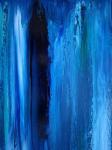 Синий и бирюзовый здесь — не цвет, а пространство. Белый — свет, пена, воздух, момент выхода на поверхность. Тёмные слои создают ощущение глубины и веса, а светлые мазки — движение и освобождение.