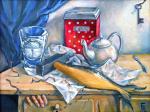Работа посвящена метафорическому представителю Европейского пост авангарда Гюнтеру Юккеру. Основой творчества которого являются гвозди. Работа наполнена скрытыми смыслами и аллюзиями. Рыба превратилась в молоток ассоциируясь с разного рода мистическими и культовыми образами. Рыба - символ Христа, молоток с гвоздями - символ распятия, муравьи- кропотливый труд, которые ведут зрителя сладкой славе и т.д Эта картина — сложное произведение, которое через натюрморт с сюрреалистическими элементами отдаёт дань уважения Гюнтеру Юккеру. Гвозди, будильник в воде и мотивы разрушения перекликаются с идеями Юккера о времени, материальности и новом начале. В то же время художник добавляет свои символы — ключ, насекомых, руку, — создавая многослойное произведение о времени, тленности и поиске свободы. Картина вызывает смешанные эмоции, сочетая уют повседневности с тревогой абсурда, и побуждает зрителя задуматься о том, как время и разрушение влияют на нашу жизнь и творчество.