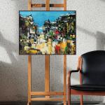 Картина Ритмы ночного города — это абстрактный урбанистический пейзаж, написанный в технике импасто с помощью мастихина. Яркие мазки, густая фактура и насыщенная цветовая палитра создают впечатление живого, пульсирующего города в ночное время. Контраст тёплых и холодных тонов передаёт ощущение света, пространства и движения. Работа наполнена жизнью и энергией, отлично подойдёт для современного интерьера, где ценится экспрессивное искусство и архитектурные формы.