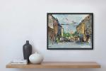 Выразительный городской этюд из серии «Питерские этюды», выполненный в технике масляной живописи мастихином. Работа передаёт живую атмосферу старого Петербурга: солнечный свет скользит по фасадам домов, на фоне ярко выделяются купола церкви, улица наполнена движением и цветом.