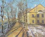 На этой картине я хотела показать один из любимых районов моего города Минска, залитый весенним солнцем. Внизу можно увидеть две тени - мужскую и женскую.