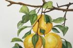Ветка с четырьмя спелыми реалистичными лимонами.