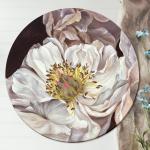 Круглая картина акрилом, диаметром 60 см, словно тёплое дыхание природы — мягкие молочные и глубокие коричневые оттенки переплетаются в нежном танце, а яркие жёлтые тычинки вспыхивают живыми акцентами, будто солнечные искры на спокойном фоне. Работа излучает тепло, гармонию и тихую силу.