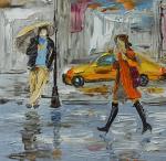 Ключевые слова: Городской пейзаж, такси, люди, город, улицы, для интерьера, картины настроения, Василий Черных