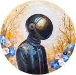 Эта картина - пронзительное размышление о будущем, где грань между человеком и машиной размыта. Задумчивое лицо робота с человеческим выражением словно задает вопрос: что делает нас живыми? Металлический корпус, покрытый ржавчиной, контрастирует с живыми глазами, особенно с правым - красным, как сигнал тревоги. Тёмный фон с огненными всполохами создаёт атмосферу постапокалиптического мира, где технологии обрели душу. Выглядывающая из-за края рука добавляет произведению динамики и создаёт эффект присутствия пришельца из будущего, заставляющего нас переосмыслить понятие человечности.