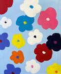 Эта современная абстрактная акриловая картина станет эффектным акцентом в любом интерьере. На белом холсте изображены смелые черные цветы в минималистичных вазах, окруженные ярким фоном в красный, розовый и синий горошек. Контраст между графичными силуэтами цветов и игривыми цветными элементами добавляет картине динамичности и визуальной притягательности.