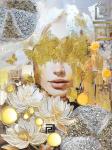 Красивая переливающаяся зеркальная картина абстракция Девушка и белые лотосы (белые лилии)