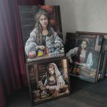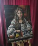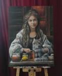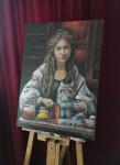 Девушка с котом является частью Русско-славянской серии. Интересуясь культурой и традициями своей страны, решил создать серию работ, которая бы раскрывала душу русского народа. В рамках серии создаются сюжетные композиции, в которых показывается атмосфера традиционного быта русского народа.
