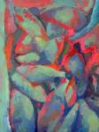 Динамичная картина маслом, запечатлевшая сочную пластику свежей рыбы в ящике. Экспрессивные мазки в контрастной палитре — от пронзительно-бирюзового до огненно-кораллового — создают эффект вибрации цвета.