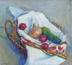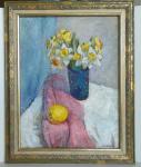 Картина «Нарциссы и лимон» наполнена весенней свежестью и светлой гармонией. На полотне изображён прозрачный синий стакан с пышным букетом нарциссов — их белоснежные лепестки и золотисто-жёлтые сердцевины словно излучают солнечное тепло. Цветы расположены на фоне мягких голубых и серых оттенков, что создаёт спокойное и нежное настроение.На столе перед вазой лежит розоватая ткань, на которой выделяется яркий акцент — сочный лимон. Его насыщенный жёлтый цвет перекликается с оттенками нарциссов, создавая живую цветовую рифму и объединяя композицию.Работа излучает лёгкость, свежесть и радость от первых весенних дней. Художник тонко передаёт атмосферу пробуждения природы и домашнего уюта, в котором цветы и простой фрукт становятся символами красоты и гармонии.