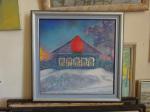 Работа написана масляными красками с применением серебряной потали, на холсте на подрамнике. Есть деревянная рама.