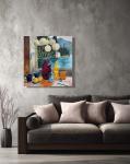 Эта картина маслом объединяет современный пейзаж и поэтичный интерьерный натюрморт. Она создает атмосферу уюта, спокойствия и внутренней сосредоточенности. Такой вид хочется видеть каждый день- в гостиной, кабинете или спальне, где важно ощущение света и пространства.