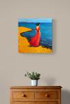 Контраст красного платья, синего моря и солнечного жёлтого берега создаёт эмоциональное напряжение и гармонию одновременно. Работа станет выразительным акцентом в интерьере и произведением, которое ежедневно напоминает о личном горизонте — о цели, к которой хочется идти.