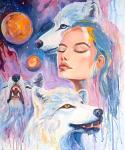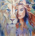 Выразительная картина, изображающая рычащего тигра и девушку на фоне насыщенного огненно-оранжевого цвета. Контраст между спокойным женским лицом и дикой мощью животного создаёт образ внутренней силы, смелости и пробуждения энергии. Динамичная манера письма, графичные линии и яркие цветовые сочетания объединяют реалистическую живопись с элементами современного стрит-арта. В работе чувствуется влияние Анри Матисса и Франца Марка — художников, передававших силу эмоций через цвет и форму.