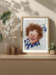«Рыжий» из серии Blue Dream — выразительный пастельный портрет на бумаге (4030 см, 2026), передающий искреннюю детскую радость через живую мимику, теплые оттенки кожи и роскошные медные кудри. Контраст насыщенного кобальтового орнамента с мягкой проработкой лица создает гармоничное сочетание классики и современности. Работа станет ярким акцентом в интерьере гостиной, детской комнаты или уютного семейного пространства, а также привлечет внимание коллекционеров, ценящих реалистичную анималистическую и портретную живопись с эмоциональной глубиной.