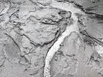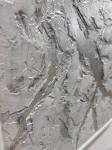 Грубая, первозданная фактура, созданная наслоениями текстурной пасты, противопоставлена идеальным, стремительным, ярким линиям серебра. Эти полосы - словно вспышка, луч, молния, чистый импульс энергии, разрезающий пространство.