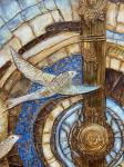 Границы мозаики очерчены золотыми акриловыми контурами, всё остальное, включая ноты мелодии песни, написано маслом — мягкими прозрачными слоями с тонкими переходами цвета.